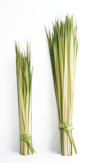 Dwarf Double Palm Strips(left) vary in size from 11" to 18" and are stripped from dwarf branches . They are packaged in bundles of a 100 strips and are ready to hand out whenyou receive them. They are suitable for making crosses. One bundle is enough for 100 people and cost $22.49 per bag.
